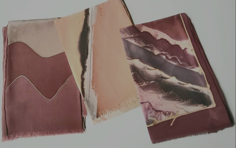Elegantni moški šali iz ročno poslikane svile. Imajo kratke resice in ročno narisan detajl (nekateri ne).Dolžina 142 cm.Vsi so unikati, opremljen...